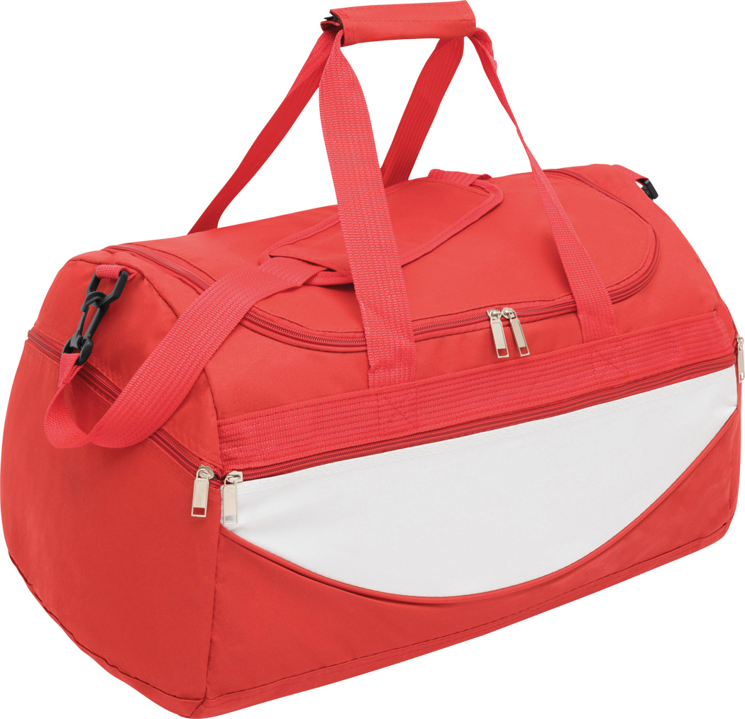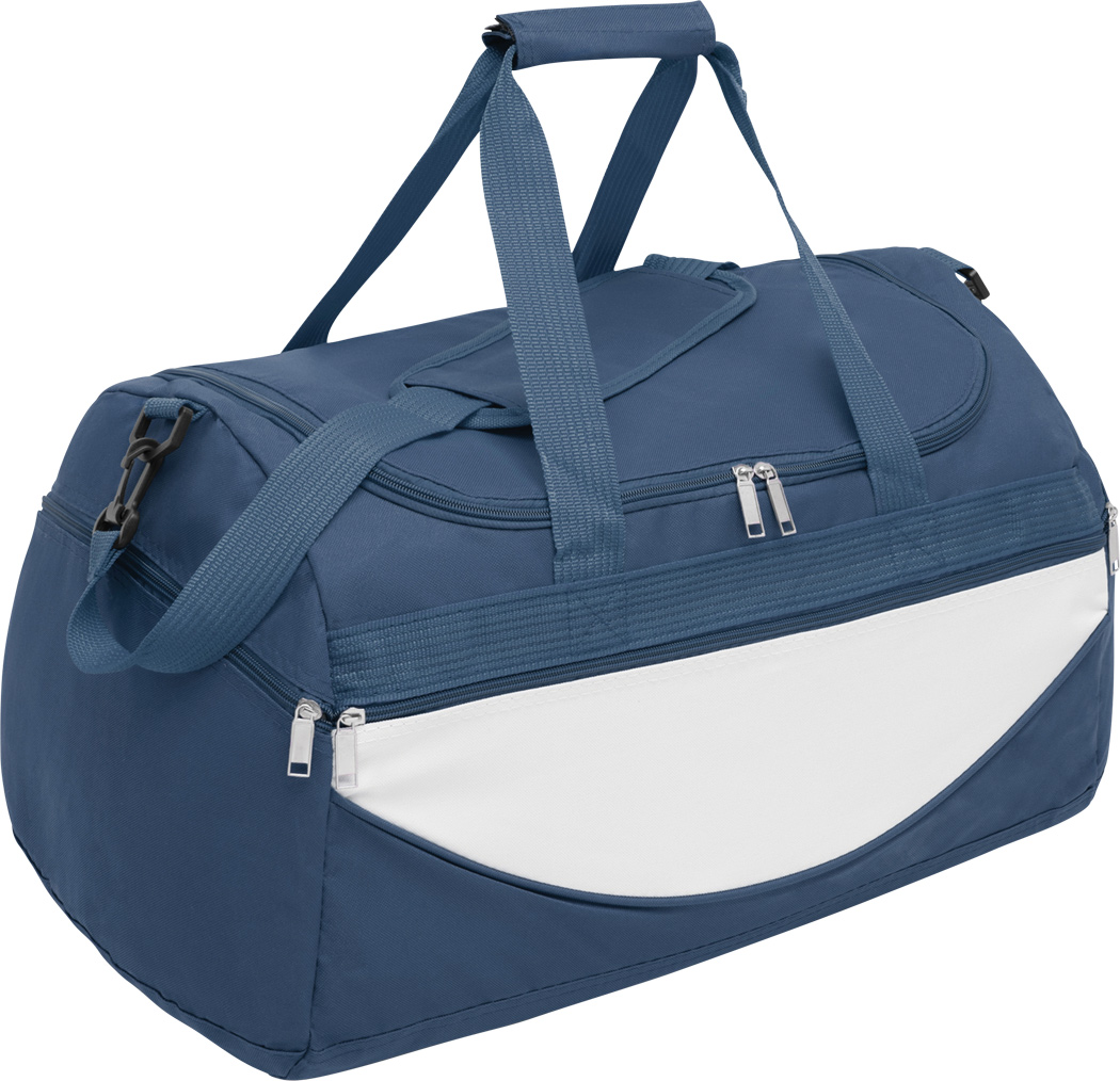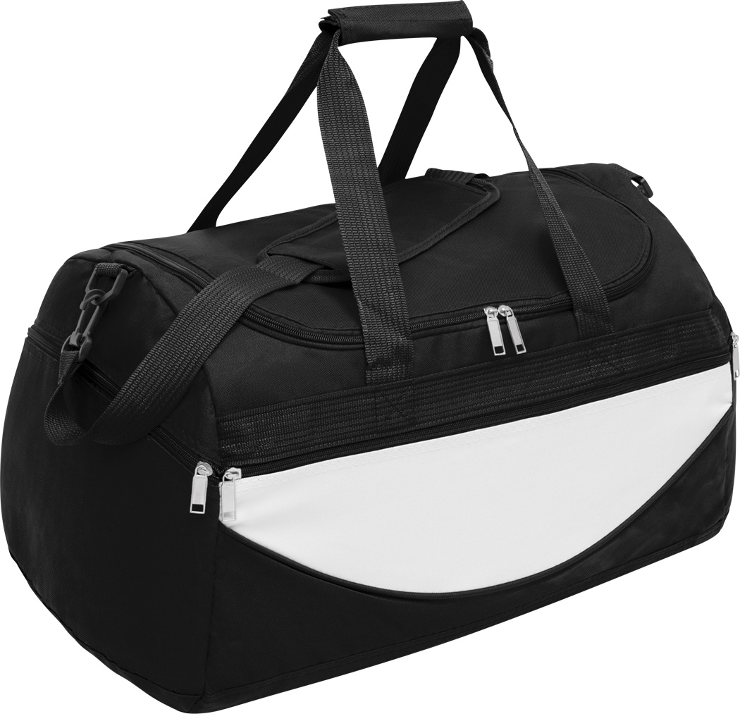 Αθλητική τσάντα CHAMP: με κύρια τσέπη με φερμουάρ, λευκή μπροστινή τσέπη με φερμουάρ, πλαϊνές τσέπες με φερμουάρ, ισχυρές λαβές μεταφοράς και ρυθμιζόμενο και αφαιρούμενο ιμάντα ώμου με μαξιλαράκι ώμου.