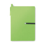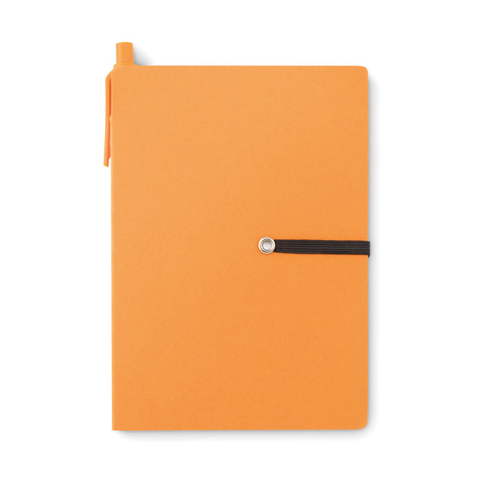 ΠΕΡΙΓΡΑΦΗ: Σημειωματάριο από ανακυκλωμένο χαρτί 70 φύλλων ριγέ, αυτοκόλλητες σημειώσεις και χρωματιστούς σελιδοδείκτες. Ελαστικό κλείσιμο, και στυλό με μαύρο μελάνι από χαρτόνι, με άκρο από ABS