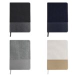 Σημειωματάριο A5 από μαλακό κοτλέ πολυεστέρα και ανακυκλωμένο PU. Περιλαμβάνει 80 φύλλα χρώματος κρεμ, με διάταξη με μία λωρίδα και ασορτί σελιδοδείκτη. Λογότυπο από ανακυκλωμένο PU στο πίσω εξώφυλλο.
