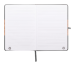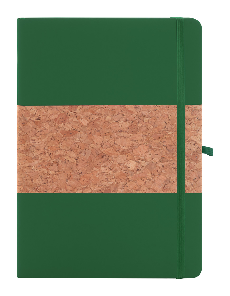 Σημειωματάριο με επικάλυψη από φυσικό φελλό και ανακυκλωμένο δέρμα PU, σελιδοδείκτη στο ίδιο χρώμα, ελαστικό κορδόνι και θήκη για στυλό. Με 80 φύλλα με επένδυση από ανακυκλωμένο χαρτί. Μέγεθος A5.