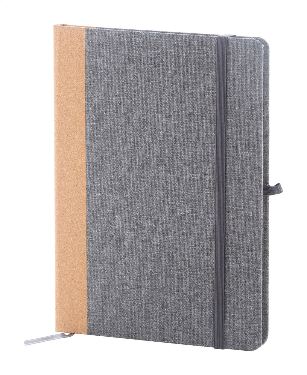 Σημειωματάριο RPET με κάλυψη πολυεστέρα, ράχη από φυσικό φελλό και 80 φύλλα με επένδυση από ανακυκλωμένο χαρτί. Με σελιδοδείκτη, λαστιχένιο λουράκι και θήκη για στυλό. Μέγεθος A5.