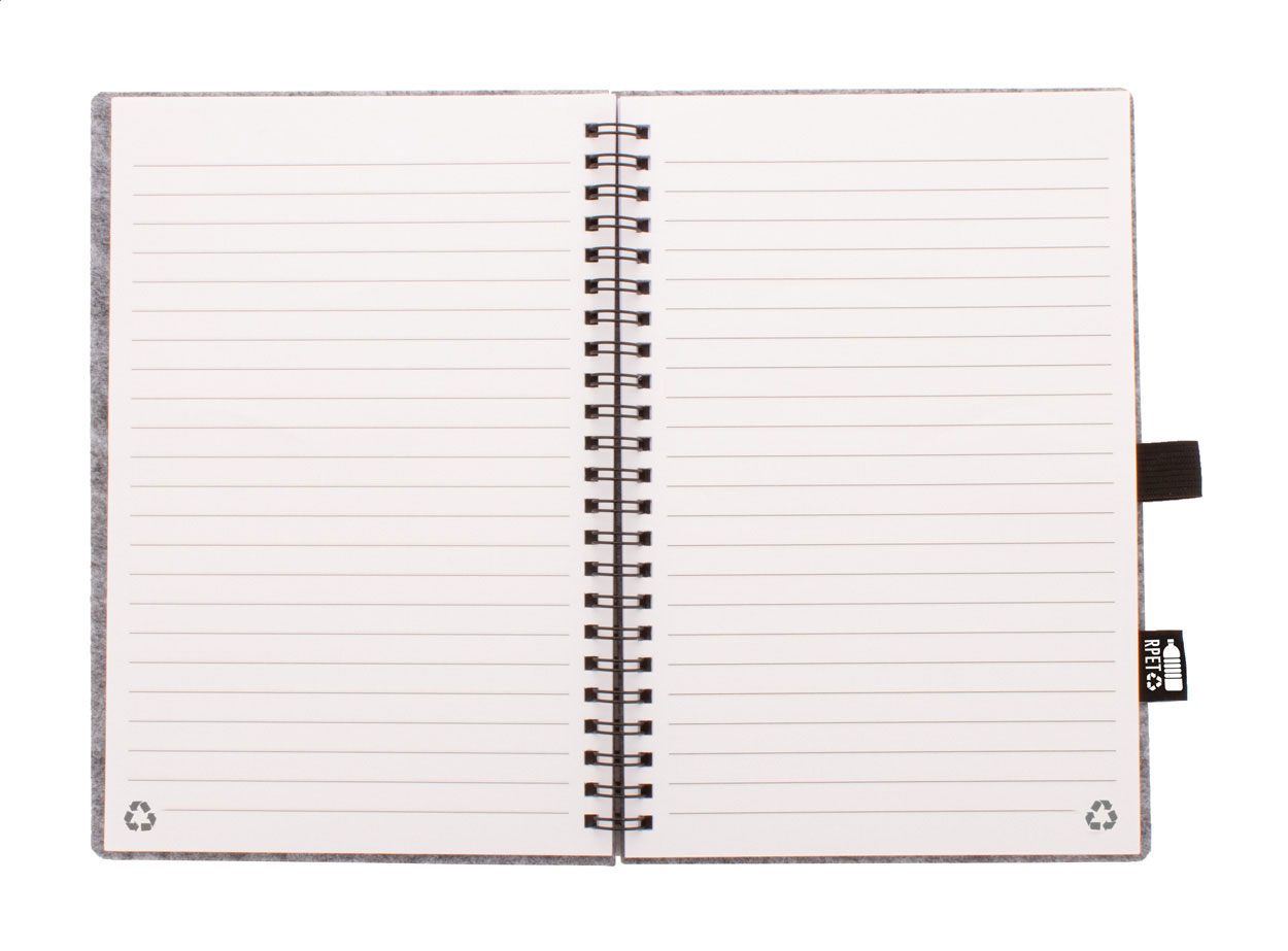 Σπιράλ σημειωματάριο RPET με τσόχα, διακριτική ετικέτα RPET και 80 φύλλα με γραμμές από ανακυκλωμένο χαρτί. Μέγεθος A5.