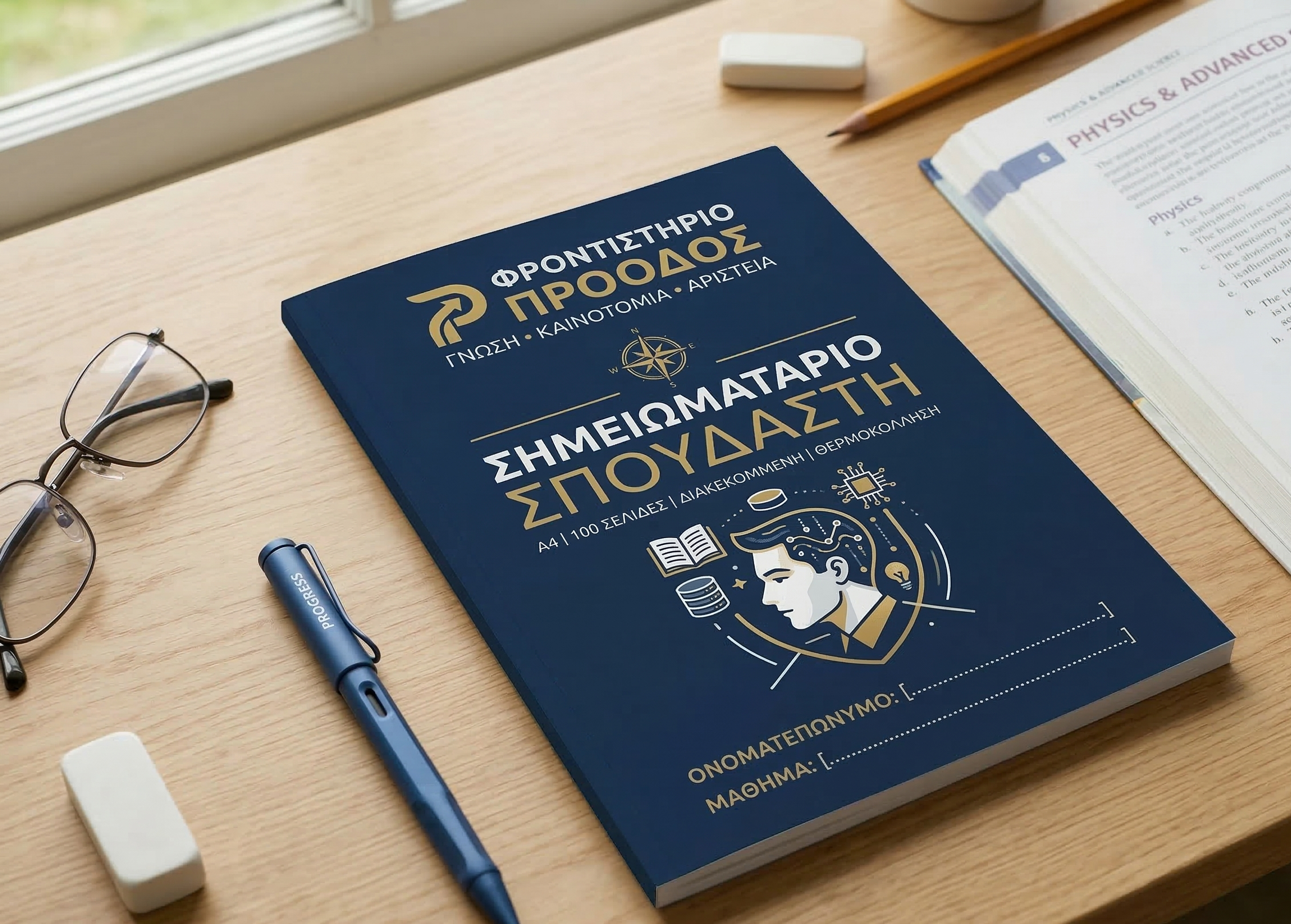 Custom τετράδιο φροντιστηρίου 17Χ25 με καρφίτσα & εκτύπωση
