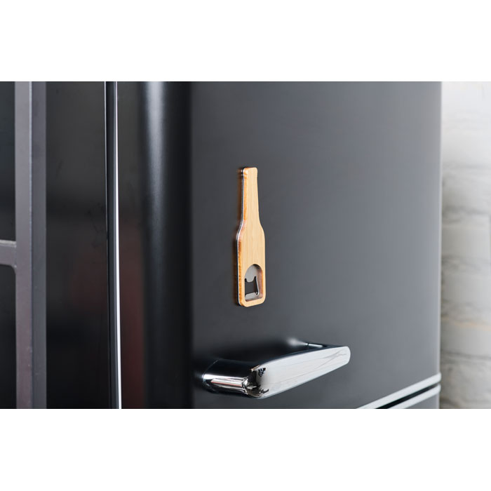 Μαγνητικό ανοιχτήρι μπουκαλιών από ανοξείδωτο ατσάλι με επιφάνεια από μπαμπού.