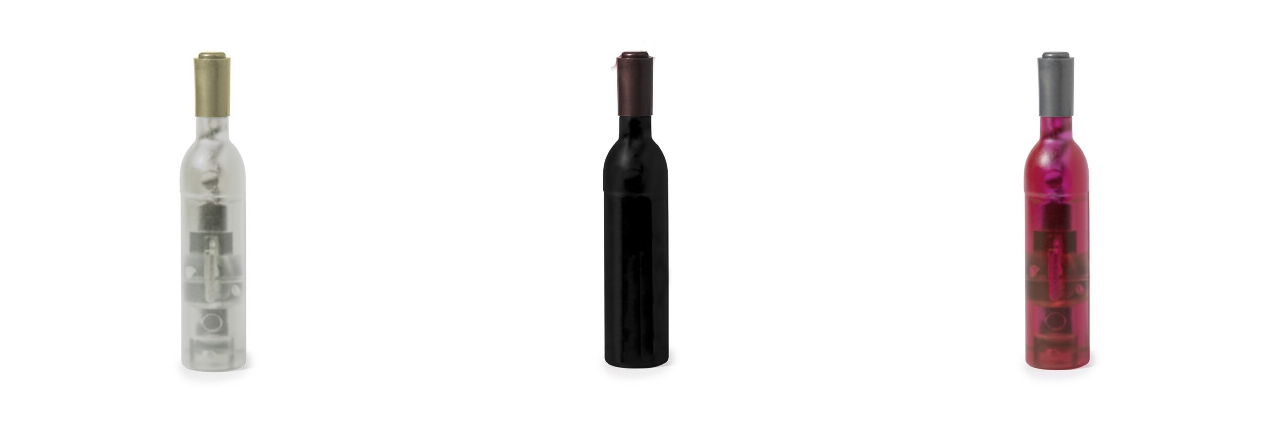 Τιρμπουσόν σε σχήμα μπουκαλιού κρασιού σε σχέδια λευκού, κόκκινου και ροζέ κρασιού. Με σώμα σε πρωτότυπο ημιδιαφανές φινίρισμα και λειτουργία ανοίγματος.