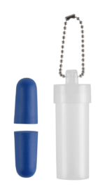 Χρωματιστές ωτοασπίδες από EVA, σε διαφανή πλαστική θήκη με μεταλλική αλυσίδα.