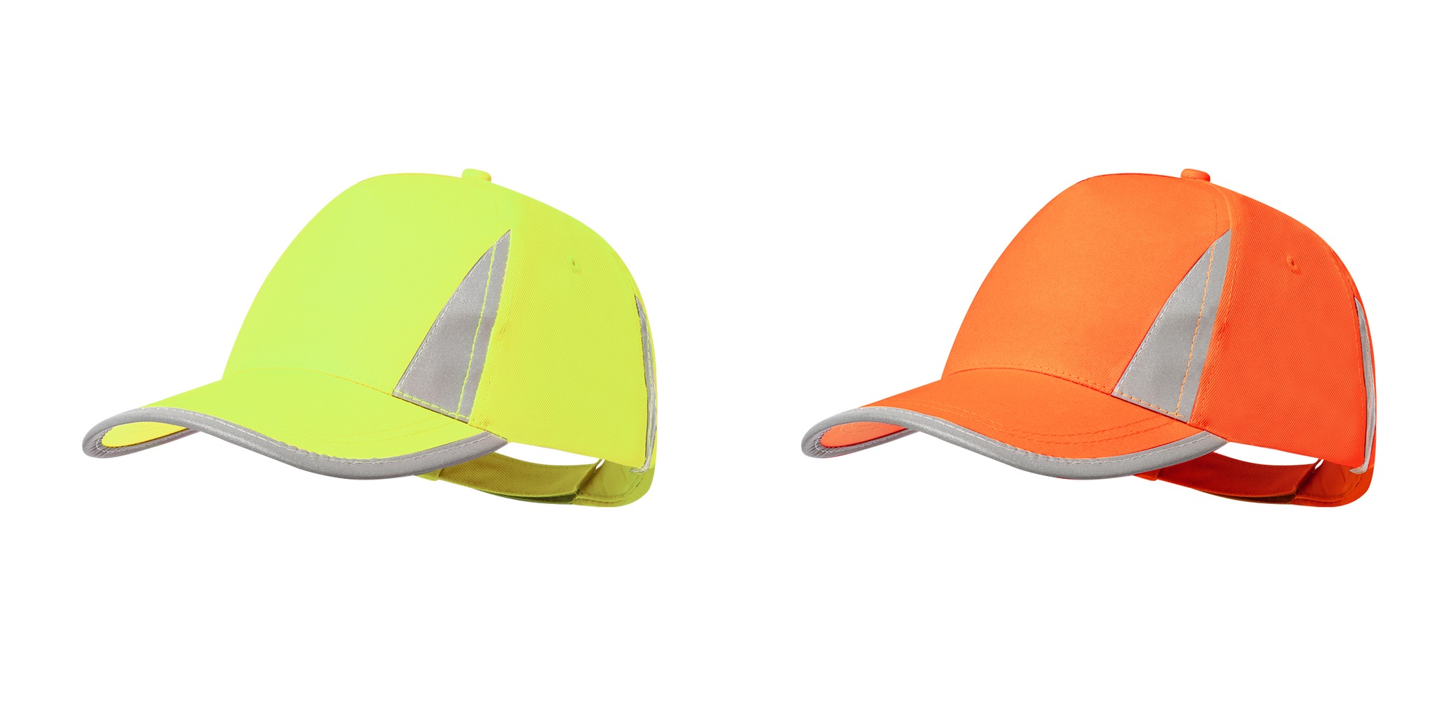 Καπέλο 5 πάνελ από μαλακό πολυεστέρα. Ρυθμιζόμενο και ανακλαστικό κούμπωμα velcro στο πίσω μέρος. Σε φθορίζον κίτρινο ή πορτοκαλί χρώμα με αντανακλαστικά στοιχεία στο γείσο, στα μπροστινά πάνελ και στο πίσω μέρος.
