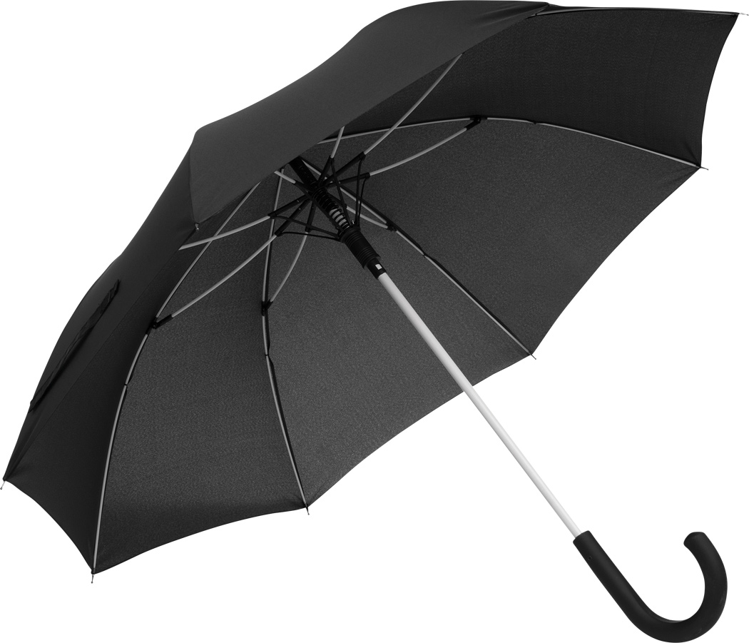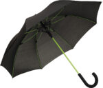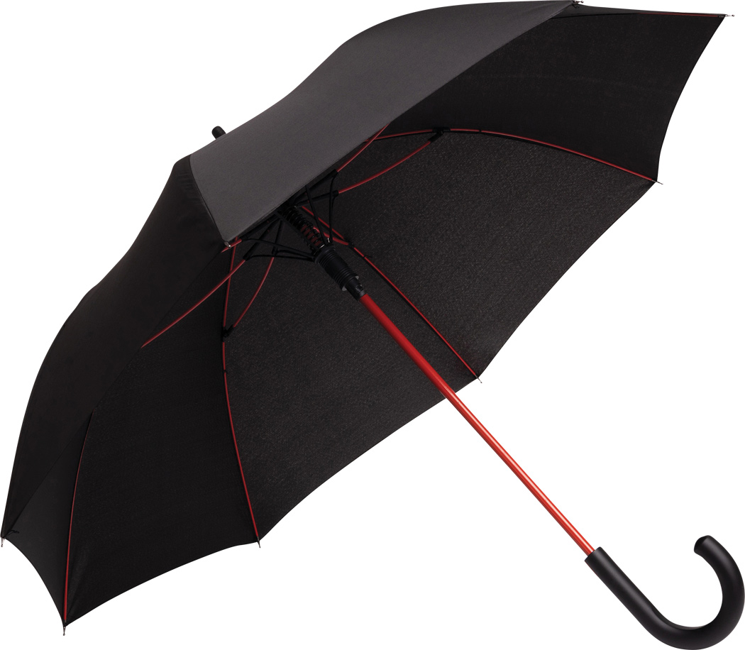 Αυτόματη ομπρέλα CANCAN: μεταλλικό στέλεχος και χρωματικά εναρμονισμένες νευρώσεις από fiberglass, με μεταλλικές άκρες, λαβή από καουτσούκ με κουμπί αυτόματης απελευθέρωσης σε αντίστοιχο χρώμα, θόλος από πολυεστέρα pongee, ιμάντας κλεισίματος με συνδετήρα αφής.