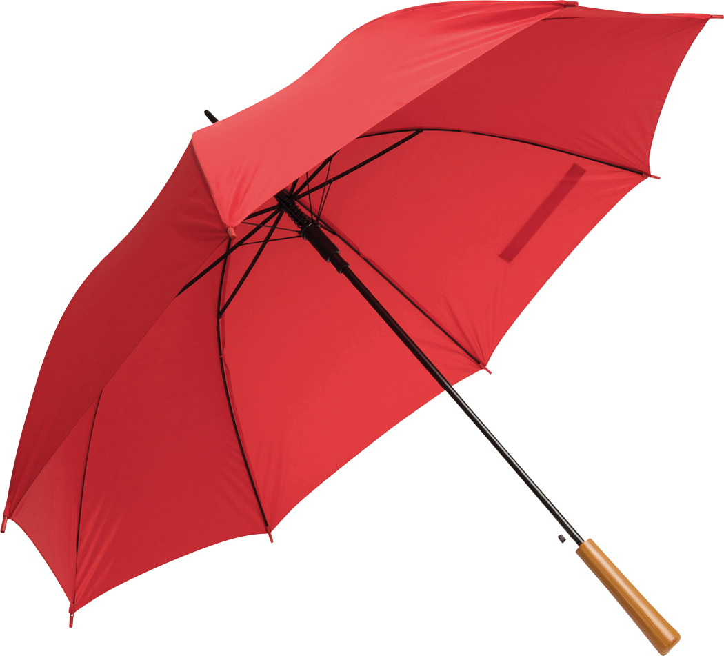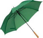 Αυτόματη ομπρέλα με ραβδί LIMBO: μεταλλικό στέλεχος και ραβδώσεις, πλαστικές άκρες που ταιριάζουν στο χρώμα, λαβή με ξύλινη εμφάνιση, θόλος από πολυεστέρα, κλείσιμο με Velcro
