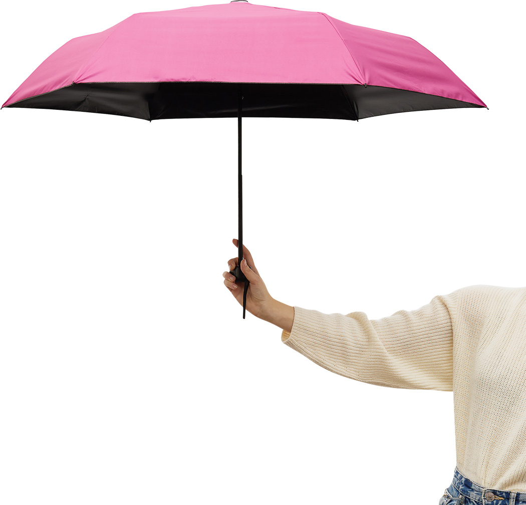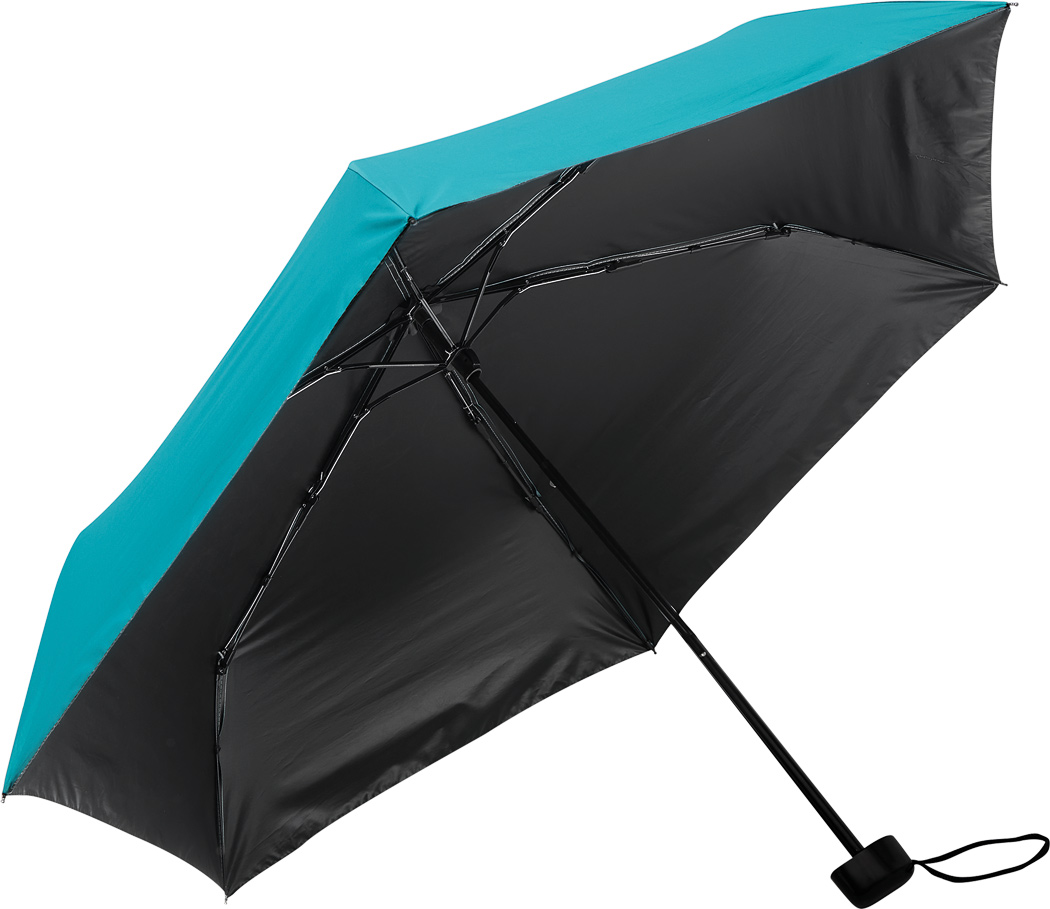 Ομπρέλα τσέπης SUNDANCE, με προστασία UV, θήκη σε αντίστοιχο χρώμα: μεταλλικό στέλεχος 3 τμημάτων, με νευρώσεις από μέταλλο/υαλοβάμβακα, μαύρη πλαστική λαβή με θηλιά, θόλος από πολυεστέρα pongee UV50+, εσωτερικά με μαύρη επίστρωση, μεγάλο κλείσιμο με Velcro.