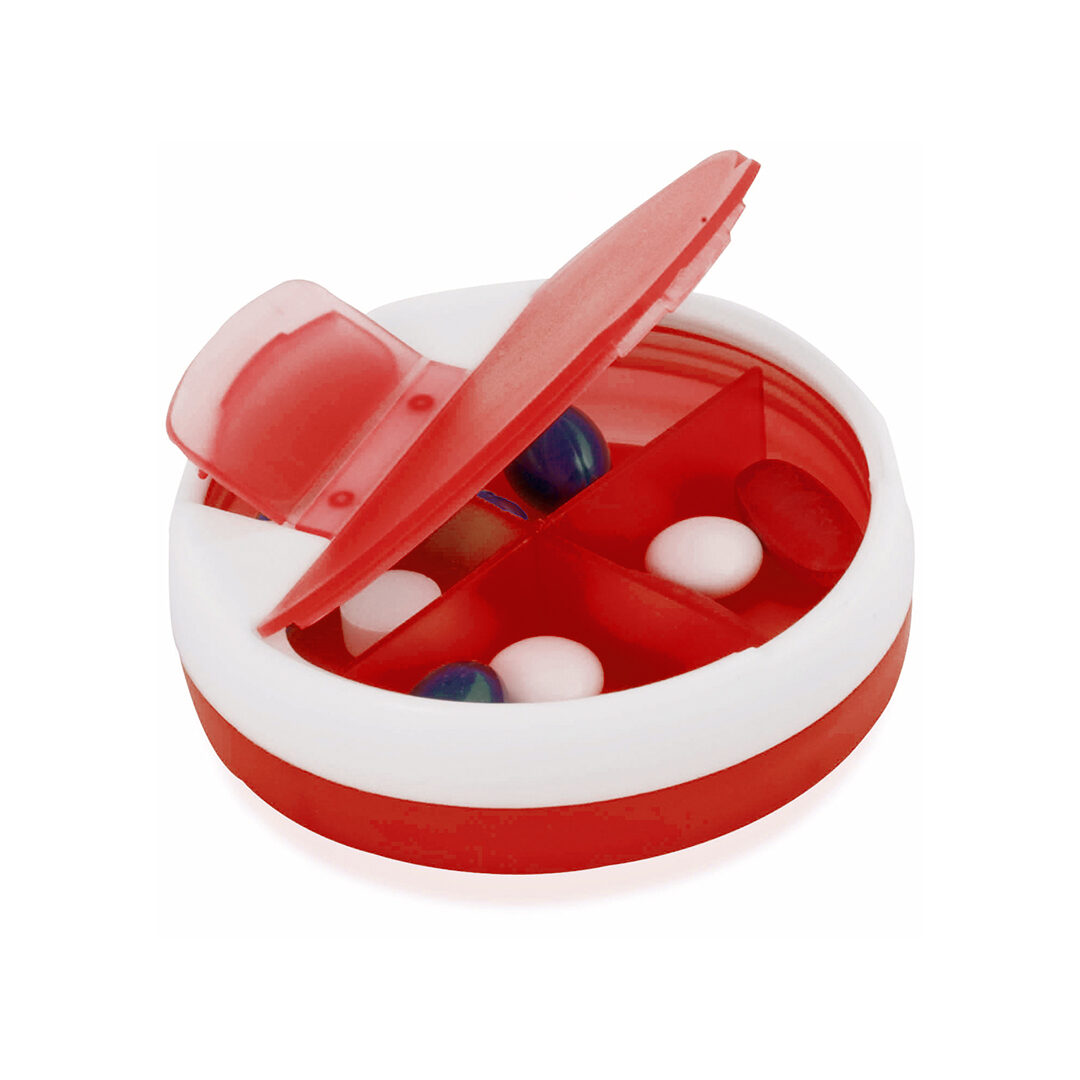 Πρωτότυπος διανομέας δισκίων σε δίχρωμο σχέδιο με κάλυμμα διανομέα και 4 εσωτερικές θήκες.
