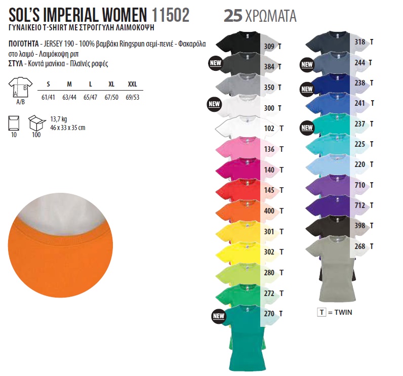 ΣΥΝΘΕΣΗ: Jersey 190gr,100% βαμβάκι Ringspun σεμί-πενιέ.