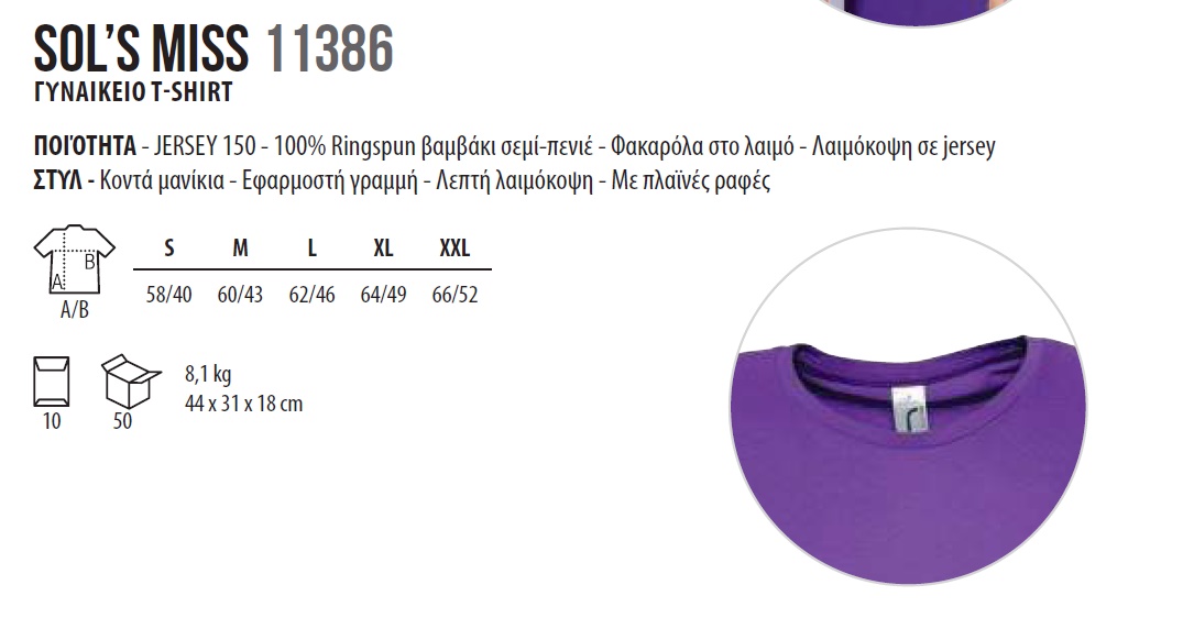 ΣΥΝΘΕΣΗ: Jersey 150gr,100% Ringspun βαμβάκι σεμί-πενιέ.