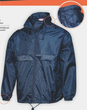 ΠΕΡΙΓΡΑΦΗ: Μπουφάν αντιανεμικό και αδιάβροχο με κουκούλα σε θήκη στον γιακά