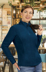 Γυναικείο φούτερ με στενή εφαρμογή από φλις με μισό φερμουάρ. Κατασκευασμένο από ελαφρύ ύφασμα micro fleece με εξωτερικό φινίρισμα κατά του χνούδιου και εσωτερική βουρτσισμένη επένδυση για βέλτιστη θερμομόνωση και επιπλέον άνεση.