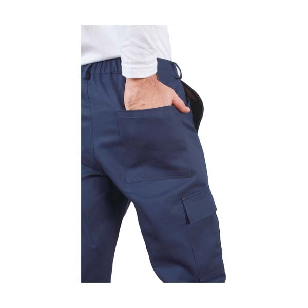ΠΕΡΙΓΡΑΦΗ: Παντελόνι εργασίας με ελαστική αυξομείωση στο πίσω μέρος της μέσης. Κλείσιμο με φερμουάρ και κουμπί. 2 μπροστινές τσέπες. 1 πλαϊνή και 1 οπίσθια τσέπη. Ίσιο τελείωμα