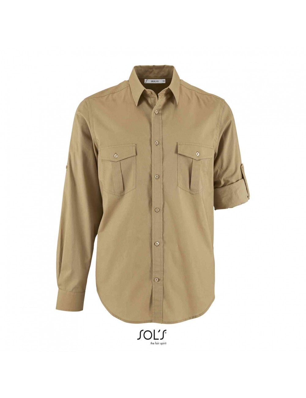 ΠΕΡΙΓΡΑΦΗ: Ανδρικό πουκάμισο σε ίσια γραμμή – 2 τσέπες στο στήθος με καπάκι και κουμπί. Ίσιες μανσέτες με 1 κουμπί. Σχισμή στο τελείωμα με κουμπί. Πατιλέτα με 7 κουμπιά. Ρυθμιζόμενες λωρίδες για γύρισμα μανικιών