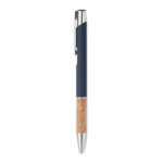 Στυλό με κουμπί από αλουμίνιο με λαβή από φελλό. Μπλε μελάνι.