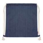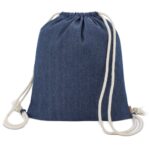 Πρωτότυπη τσάντα πλάτης με ιμάντες ώμου από σχοινί από μπλε τζιν ύφασμα.