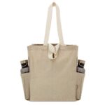 Τσάντα μεγάλης χωρητικότητας από ανακυκλωμένο βαμβάκι με ενισχυμένη διπλή λαβή (μακριά λαβή, 3,5×70 εκ., κοντή λαβή, 3,5×45 εκ.). Περιλαμβάνει δύο πλαϊνές τσέπες (13×21 εκ.) και μία εσωτερική τσέπη (17×20 εκ.)