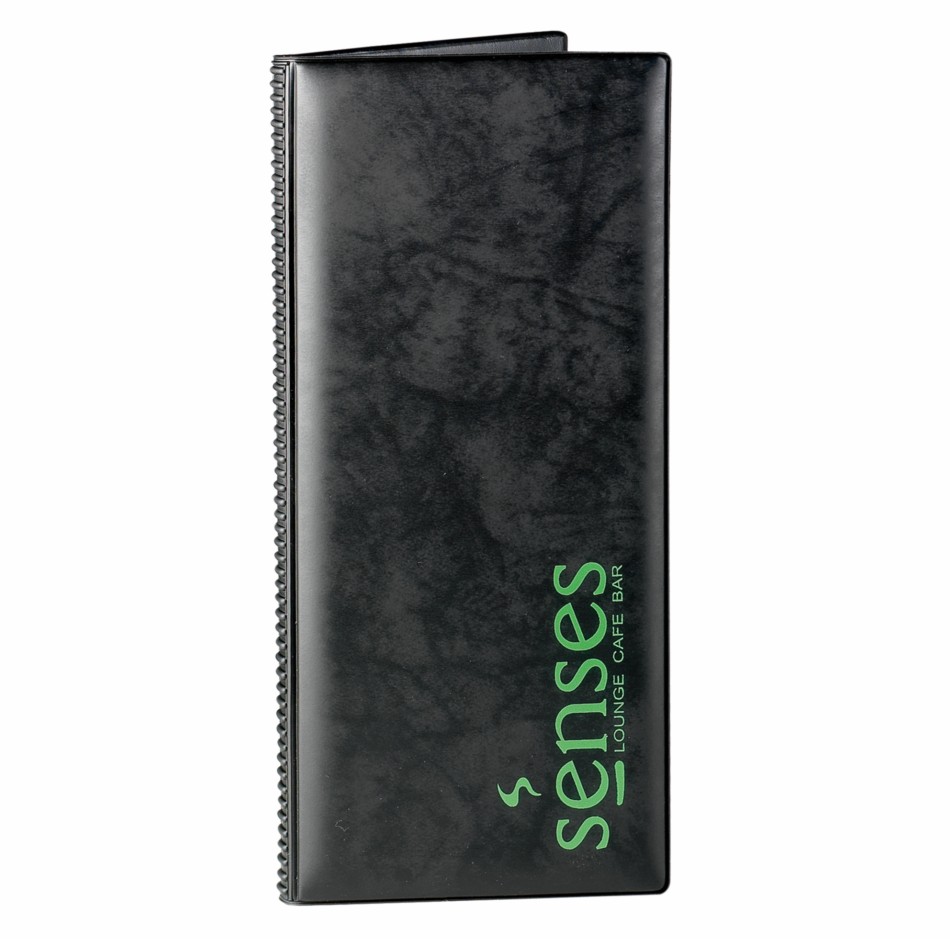 ΠΕΡΙΓΡΑΦΗ: Τιμοκατάλογος καφέ μπαρ 14Χ29cm με εσωτερικές ζελατίνες από υλικό mandarina.Ιδανική πρόταση για καφέ μπαρ και wine list