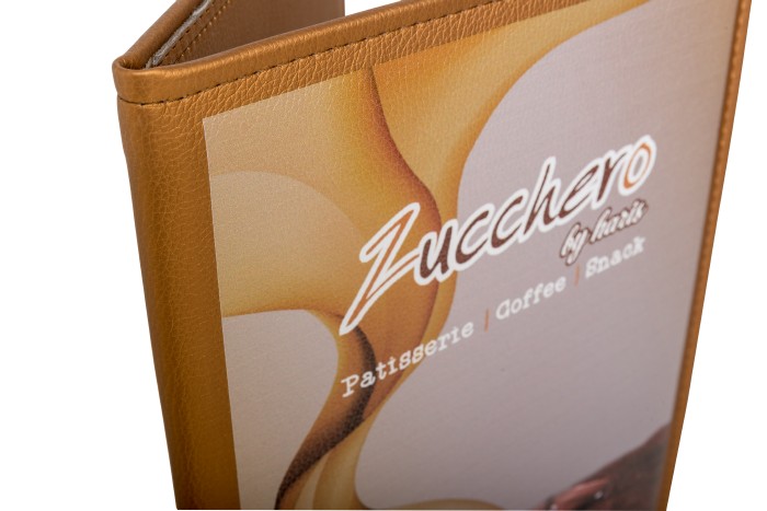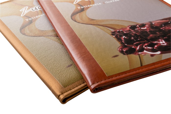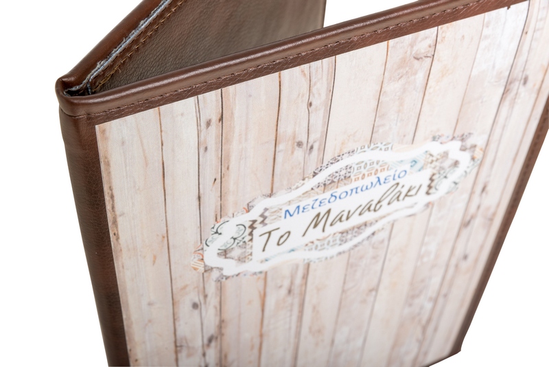 - Δερμάτινοι κατάλογοι μενού με ψηφιακή εκτύπωση τετραχρωμίας του λογότυπου του εστιατορίου σας.