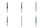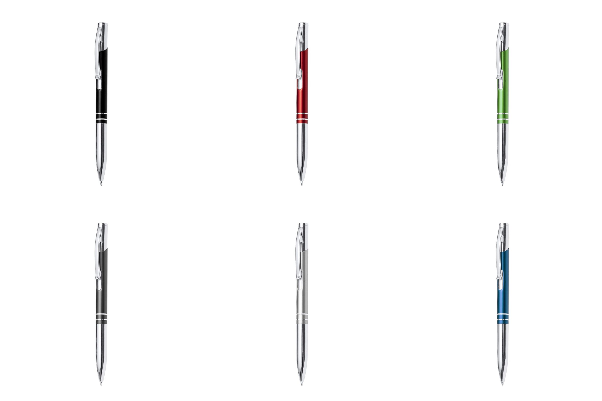 Πρωτότυπο στυλό με σφαιρική πένα και μηχανισμό με κουμπί, σε κομψό δίχρωμο σχέδιο. Μπλε μελάνι.