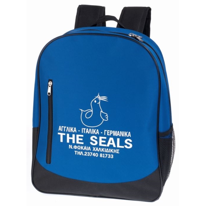 ΠΕΡΙΓΡΑΦΗ: 2 ιμάντες για την πλάτη,1 χειρολαβή,1 κεντρική θήκη με φερμουάρ, 1 τσέπη με κάθετο φερμουάρ στο μπροστινό τμήμα και 1 διχτάκι για μπουκάλι νερού στο πλάι