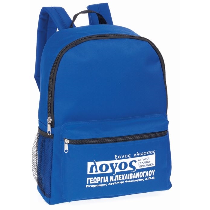 ΠΕΡΙΓΡΑΦΗ: 2 ιμάντες για την πλάτη,1 χειρολαβή,1 κεντρική θήκη,1 τσέπη με φερμουάρ στο μπροστινό τμήμα,1 διχτάκι για μπουκάλι νερού στο πλάι