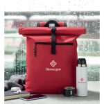 Σακίδιο πλάτης για φορητό υπολογιστή 15 ιντσών με ρολό από πολυεστέρα 600D με ενίσχυση στην πλάτη και τη βάση. Μπροστινή τσέπη με φερμουάρ. Επένδυση 210D.